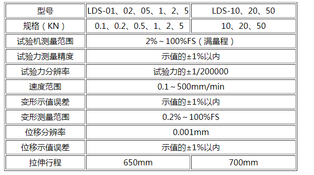 LDS系列電子拉力試驗機采用鋁合金外罩或噴塑外罩,主機采用步進或交流伺服電機、精密減速機、高精度絲杠,具有傳動平穩(wěn)、噪音低、速度精度高、調(diào)速范圍寬、使用壽命長等特點;液晶實時顯示,采用國內(nèi)外優(yōu)質(zhì)技術(shù),全數(shù)字放大、采集,顯示穩(wěn)定、精度高,可顯示試驗力、峰值、位移、速度、試驗狀態(tài)等,外觀大方,使用方便,操作簡單,具有限位、過載自動保護、試樣斷裂自動停機等功能。