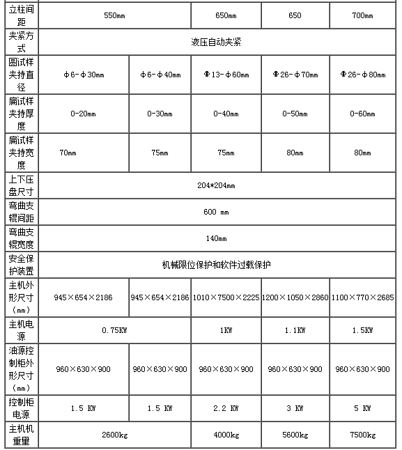 本機由四立柱雙絲杠油缸下置式高強度主機及琴式油源控制柜組成,油泵采用意大利馬祖奇進口低噪音高性能齒輪泵。拉伸空間位于主機上方,壓縮、彎曲試驗位于主機下方即中橫梁和工作臺之間。試驗空間的調(diào)整通過移動中橫梁來實現(xiàn),中橫梁升降采用鏈條傳動。計算機全自動閉環(huán)控制高性能電液比例伺服閥來完成對各種材料的拉伸、壓縮、彎曲等試驗。試驗完成以后自動采取材料的FM、REH、REL、RPO.2、RP1、RM和彈性模量E等實驗結(jié)果。