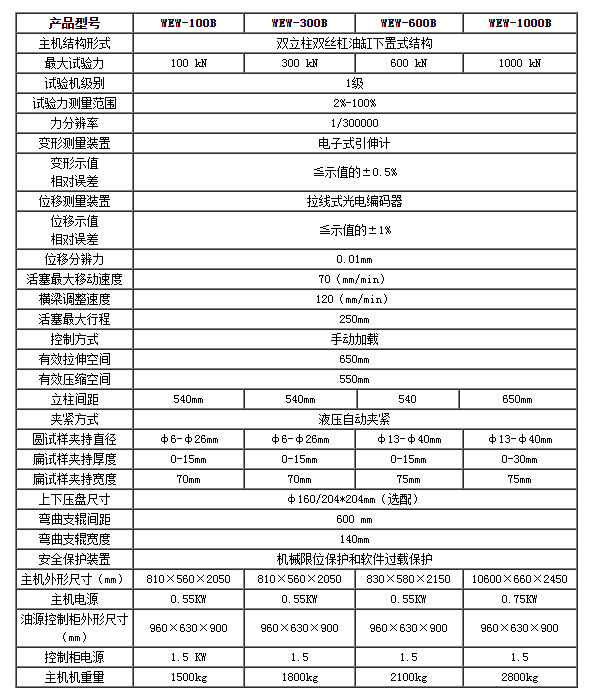 濟(jì)南試金WEW-B系列微機(jī)屏顯式液壓萬(wàn)能試驗(yàn)機(jī)主要用于金屬材料的拉伸、壓縮、彎曲等力學(xué)性能試驗(yàn),增加簡(jiǎn)單的附件后可對(duì)水泥、混凝土、磚、瓦、橡膠及其制品進(jìn)行檢測(cè)。
